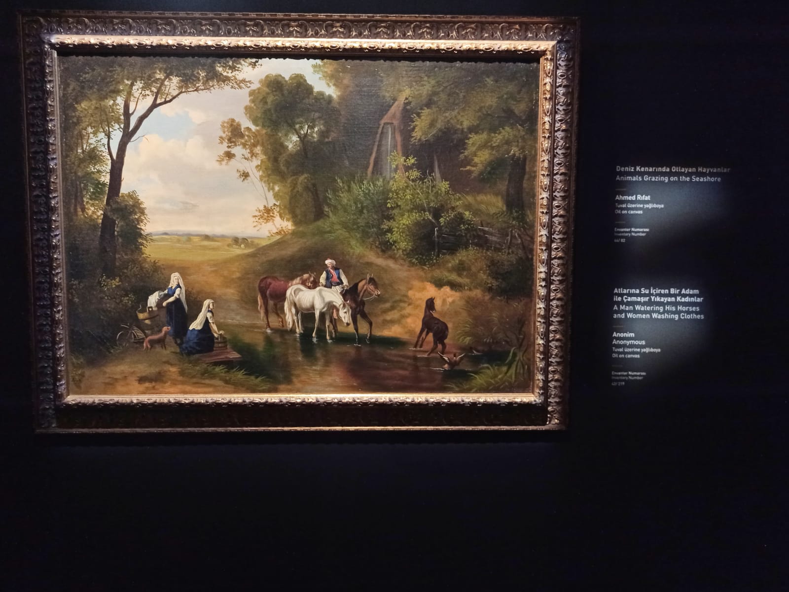 TBMM, eserin Milli Saraylar Resim Müzesi’nde Osmanlı Sarayı’nda Manzara bölümünde sergilendiği belirtmişti. İlgili tabloyu yerinde incelemek adına Dolmabahçe Sarayı’nda bulunan Milli Saraylar Resim Müzesi’ne gittik. Tablonun giriş katında, “Osmanlı Sarayında Manzara” kısmında bulunduğunu gördük.