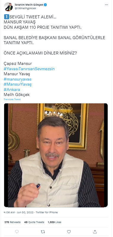 Bunun üzerine, eski ABB Başkanı İbrahim Melih Gökçek, 30 Haziran 2022 tarihinde Twitter hesabı üzerinden paylaştığı bir videoda bu söylemlere karşılık verdi: