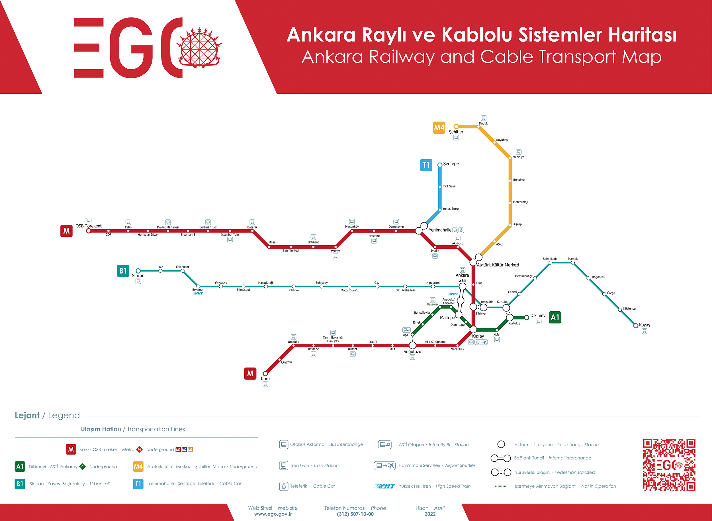 - Ulus – Keçiören (M1’den M4’e aktarmalı hat),