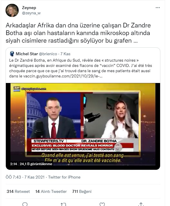 Bu örnekte kaynak olarak Dr. Zandre Botha isimli biri gösterilmiş. Fakat bu kişinin sitesine girdiğimizde alternatif tıp uzmanlığının olduğu ve tıp doktoru olmadığı yazmaktadır. Bu kişinin herhangi bir üniversite ile de bağı bulunamamıştır. Dolayısıyla bu kişi DNA üzerinde uzmanlaşmış birisi değildir.