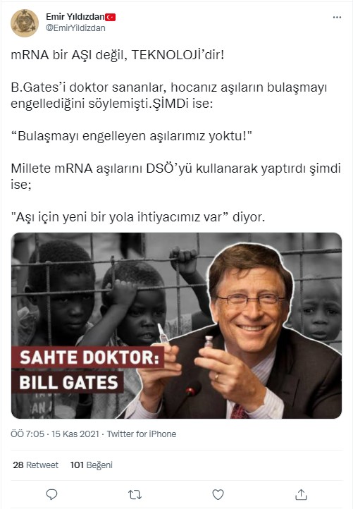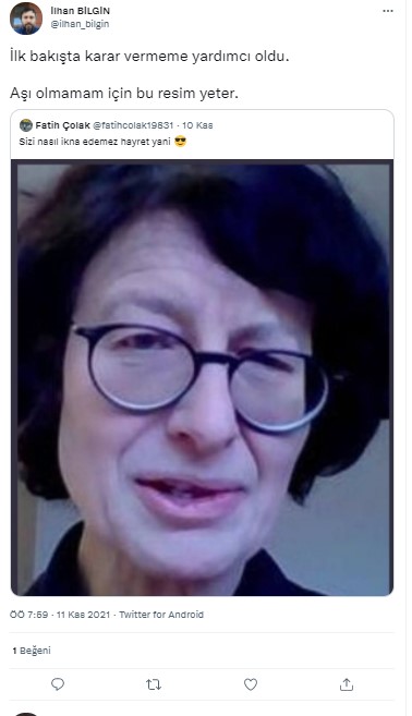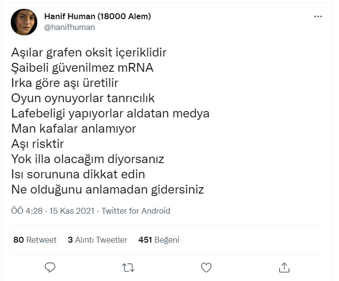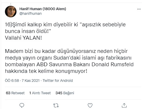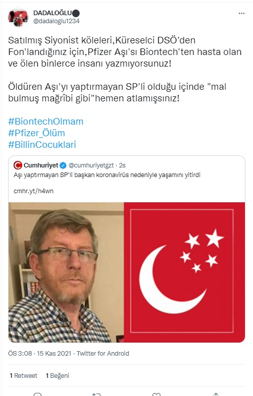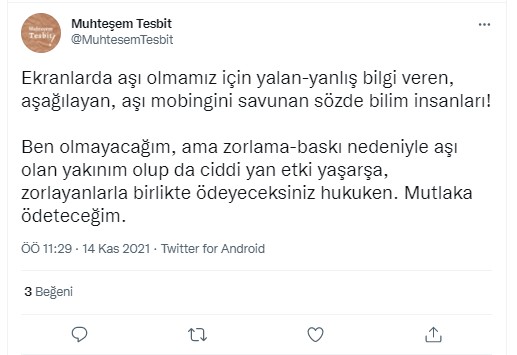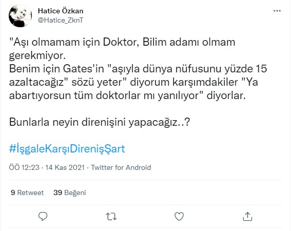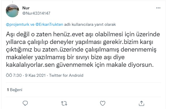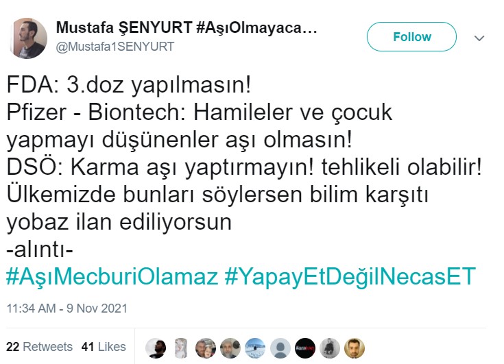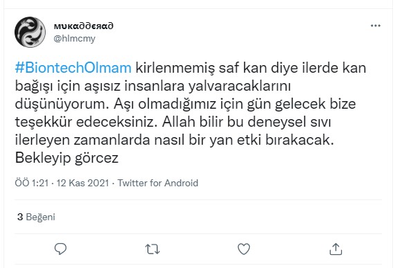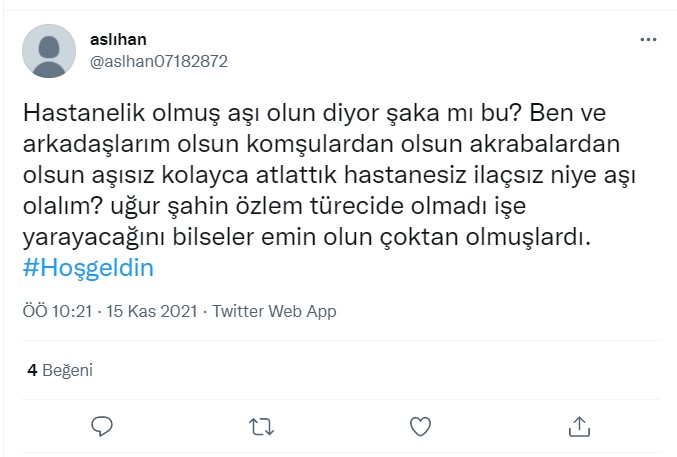 Kullanıcı aşı karşıtlarını özgür aşı olanları köle olduğunu ima ederek sadece iki seçenek olduğunu iddia etmektedir.