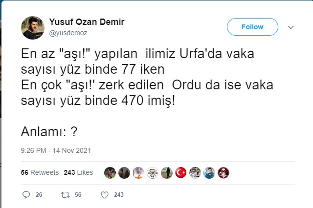 İstatistikin böyle olmasının pek çok nedeni olabilecekken sadece aşı oranının altı çizilmektedir.