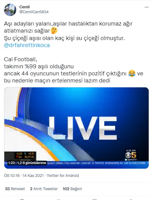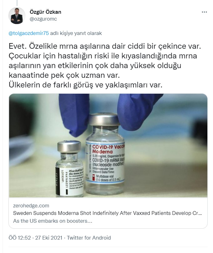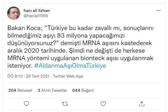 Bakan burada MRNA aşısını değil, Sinovac aşısından bahsediyor.