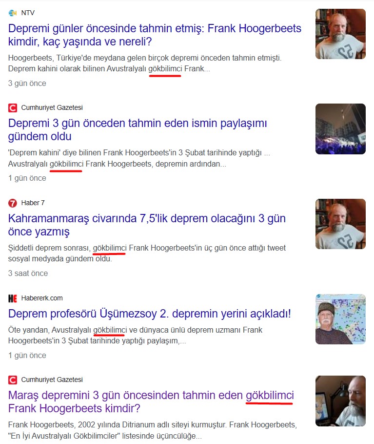 Frank Hoogerbeets’in ismini bir akademik makale arama veri tabanı olan Google Scholar’da araştırdığımızda, bu sözde gökbilimci kişiye dair herhangi bir atıfa rastlamıyoruz. Aynı şekilde üniversiteler bazında tarama yaptığımızda da bir üniversite bünyesinde akademik olarak bir çalışmasına denk gelmiyoruz. Dolayısıyla bilim yaptığını iddia eden fakat tamamıyla merdiven altı bir gökbilimci olan bu kişinin itibar edilmemesi gerekirken; haber sitelerinin ve sosyal medya kullanıcılarının birkaç tık uğruna etkileşim almak maksadıyla bu ismi ve safsatlarını yaydığını görüyoruz.