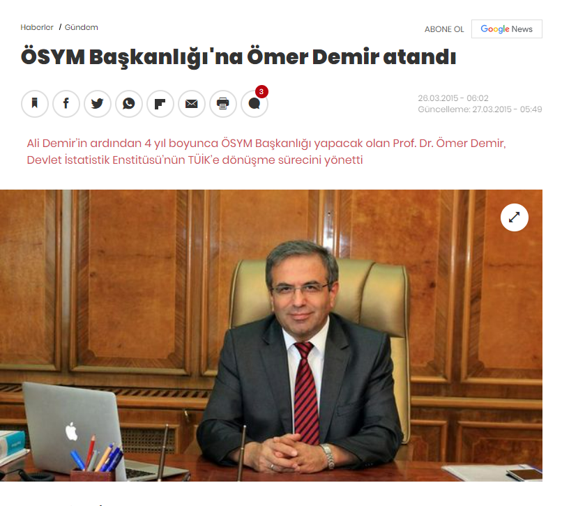 2015 yılında Ali Demir’in görev süresinin bitmesiyle yerini Ömer Demir almıştır. Üniversiteye geçiş yerleştirme sonuçlarında üst üste hata yapılmasının ardından “İlgili personelin kasıt taşımayan dikkatsizlikleri sonucu ortaya çıkan yerleştirme hatası nedeniyle ÖSYM’nin kurum olarak tartışılmasının önüne geçmek maksadıyla görevden ayrılma talebimi ilgili makama bugün itibarıyla sunmuş bulunmaktayım” diyerek 2017 yılında istifa etmiştir.
