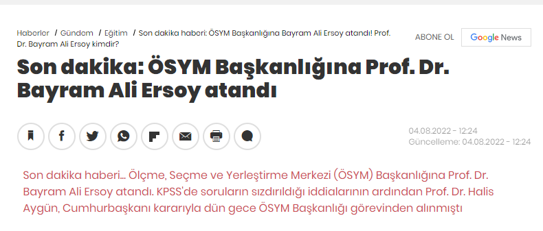 Demir’in istifasından Prof. Dr. Halis Aygün’ün atanmasına kadar geçen 1 yıllık süreçte şu anki Milli Eğitim Bakanı Prof. Dr. Mahmut Özer başkanlık yapmıştır. Aygün, 2018’de göreve başladı ve geçtiğimiz günlerde gerçekleşen KPSS sınavlarında bir yayınevi tarafından soruların önceden yayınlandığı iddialarının ardından görevden alındı.