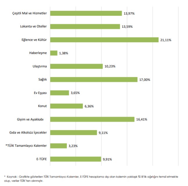 ENA Grup ise TÜFE’yi yıllık bazda %58,65 hesaplarken aylık bazda %9,91 hesaplamıştır. Gıda enflasyonunu ise aylık bazda %9,11’dir.