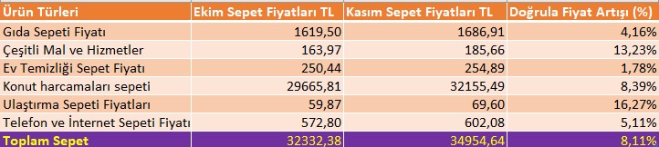 Doğrula Sepetimizin Kasım ayındaki fiyat artışı