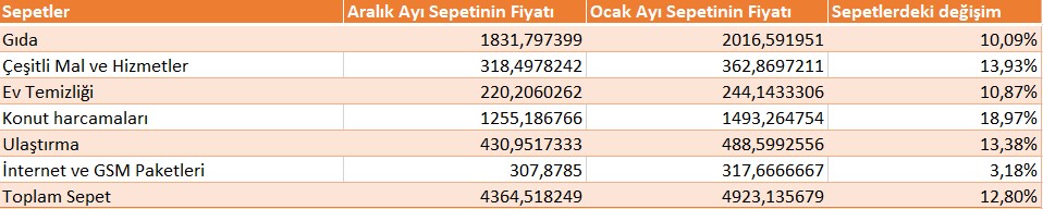 Doğrula Sepetimizin Ocak ayındaki fiyat artışı