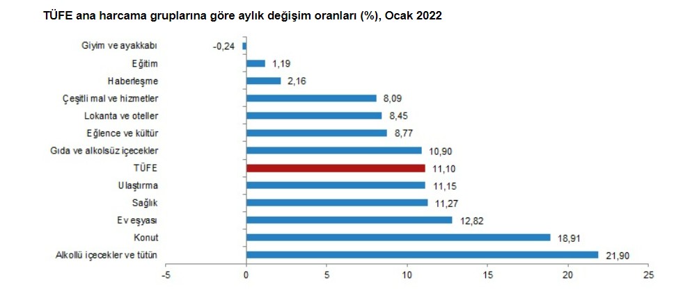 TÜİK’e göre Tüketici Fiyat Endeksi yıllık bazda yüzde 48,69 artarken aylık bazda yüzde 11,10 arttı. Gıda enflasyonu ise yüzde 10,9’dur