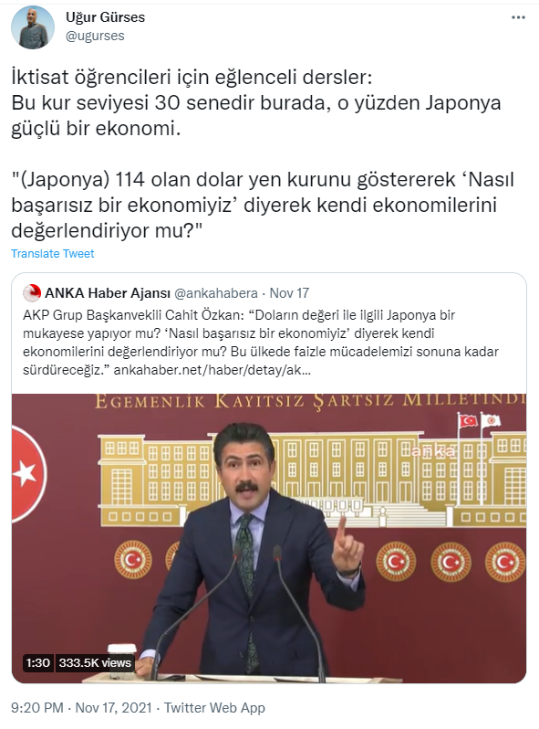 Malum ülkenin gündemi ekonomi. Hal böyle olunca, sosyal mecralarda ekonomi özelinde bir çok tartışmaya denk gelebiliyoruz. Bunlardan en sık rastladığımız konu da, ‘para birimleri özelinde’ gerçekleşen kıyaslamalar. Son olarak, Ak Parti Grup Başkanvekili Cahit Özkan Japon Yeni ile Türk Lirası’nı karşılaştırarak, dolar/TL kurundaki yükselişin normalliğini vurguladı. Bunun tam tersi olarak da, bir çok sosyal medya kullanıcısının TL’deki değer kaybına ‘Papua Yeni Gine Kinası/Türk Lirası kıyaslamasıyla dikkat çekmesini’ verebiliriz.
