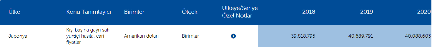 Öncelikle her ülkenin farklı dinamikleri ve kültürel altyapıları var. İlk olarak Japonya-Türkiye eşleşmesine bakacak olursak Japon Yeni’nin dolar karşısında son 30 yıldır hemen hemen aynı seviyelerde seyretmesi ve 1990 yılında parasını devalüe etmiş olması Japonya’yı güçsüz ya da refah kaybının yoğun olarak yaşandığı bir ülke olarak göstermez. 2020 OECD verilerine göre Japonya’da enflasyon -0,2 ve kişi başına düşen gayri safi milli hasıla ise 42 bin 938 dolar civarındadır. Bu ekonomik göstergelere bakarak, “Japonya aslında istikrarlı ve dolar kuru karşısında stabil bir ekonomiye sahip” diyebiliriz.