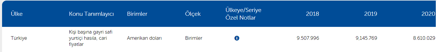 Türkiye’nin yıllara göre kişi başına düşen milli geliri.