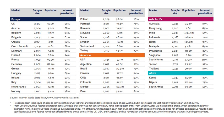 Geleneksel haber kaynaklarının (TV, gazete gibi) kullanımı azalmaya devam ederken online haber kullanımı ortaya çıkan boşluğu tam olarak doldurmadı. Bunun yerine haberlere duyulan ilgi azaldı. Raporun sonuçlarına göre haberlerden kaçınan insan sayısı arttı. Bunun nedeni sorulduğunda ankete katılanların %43’ü haberlerde çok fazla politika ve Covid-19 konularının işlendiğini, %36’sı haberlerin ruh haline zarar verdiğini ve %29’u haberlerin güvenilmez olduğunu söyledi.