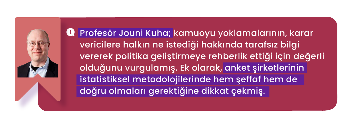 Güvenilir olsun olmasın seçim anketlerinin seçmen davranışlarında ve karar almalarında aktif bir yere sahip. Sağlıklı veri sağlayabilecek, metodolojisi açık anketler, demokratik seçim sürecini olumlu yönde katkı sağlayacaktır. Güvenilir olmayan anketler ise seçmen üzerinde yanlış algı yaratıp kimi zaman kaygıya kimi zaman da seçmenin davranışında olumsuz etkiye neden oluyor.
