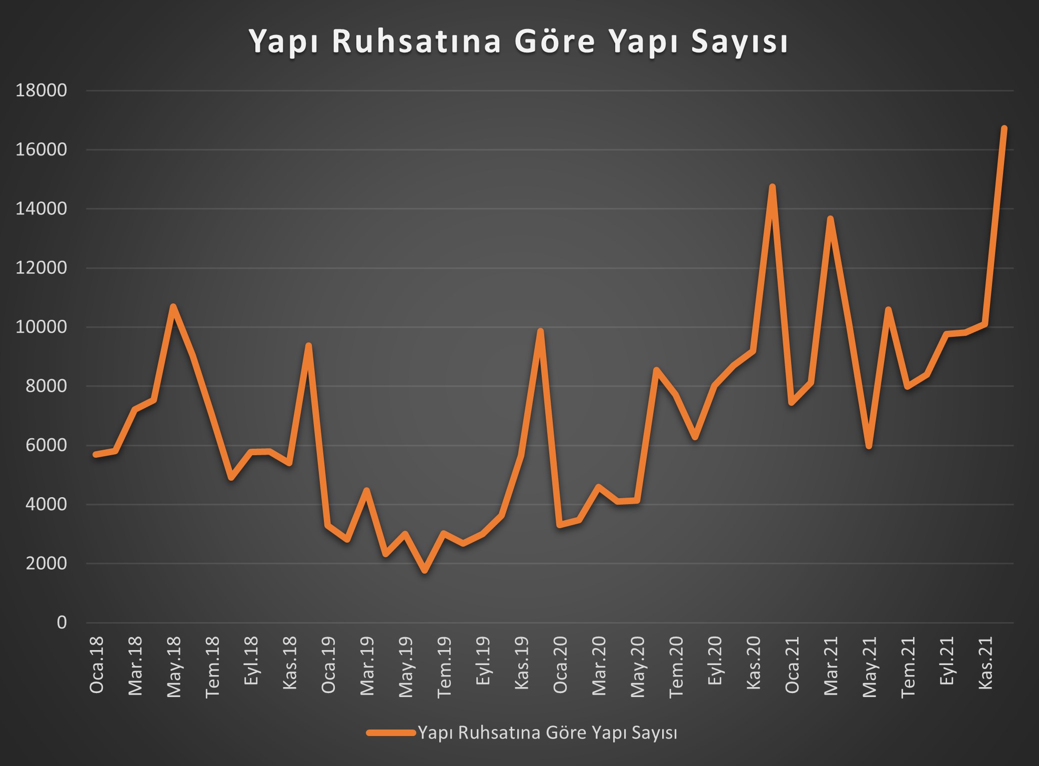 Yapı ruhsatı sayısını ve inşaat maliyetlerini karşılaştırdığımızda ise son aylarda ikisinde de artış olduğunu görüyoruz. Kasım ayında 10104 yapı ruhsatı alınırken Aralık ayında 16723 ruhsat alınmıştır. İnşaat maliyetleri ise Kasım 2021’de yüzde 7,71 artarken Aralık 2021’de yüzde 15 artmıştır.