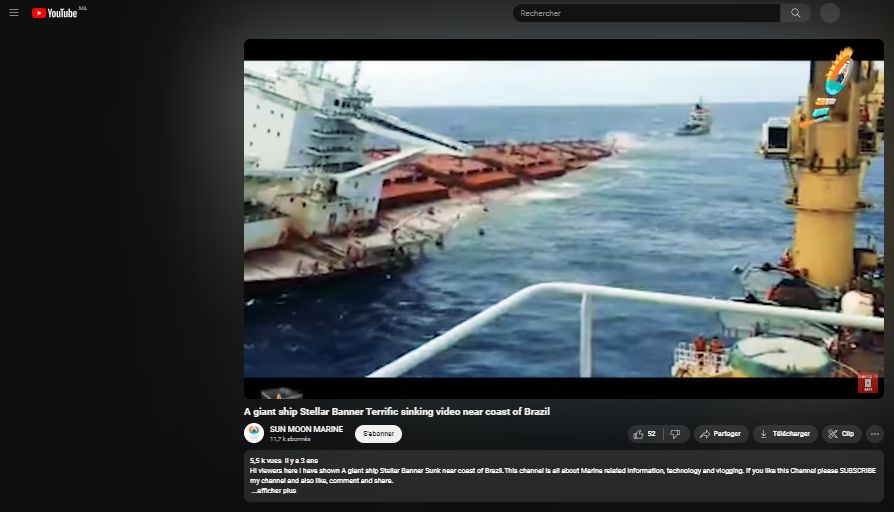 By using reverse image search method to verify the authenticity of the referenced video, the results revealed that the video is about the sinking of a cargo ship named “Stellar-Banner” off the coast of Brazil.