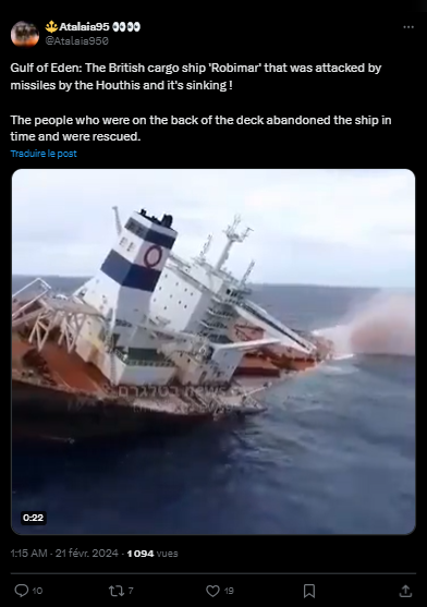 The video mentioned above is not recent and is not related to the British ship that was targeted by the Houthi group, in the Gulf of Aden.