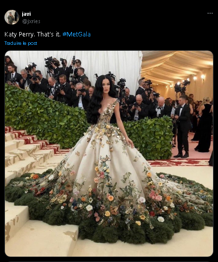The post by artist Katy Perry on Instagram, featuring fake photos of her at the Met Gala, garnered over 1.2 million likes.