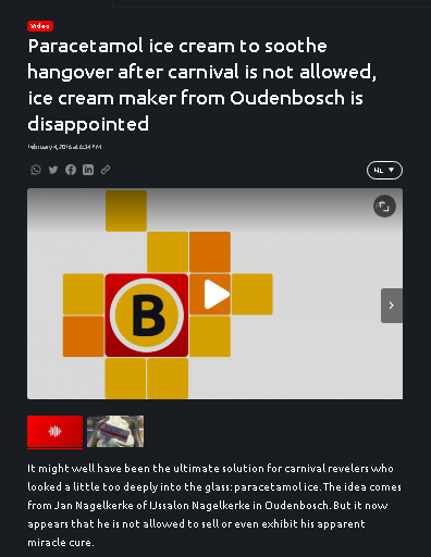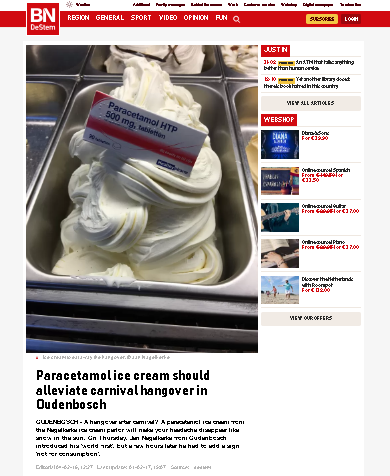 The owner of the bakery, who spoke to the news channel BN DeStem about the product, mentioned that the 6-liter ice cream contained 20 painkiller pills and a bit of lemon juice for flavor, and that only the producers had tasted it. However, Jan Nagelkerke remarked, ‘I threw away the rest of the ice cream; it definitely wasn’t one of my best.’ He also said that this ice cream wasn’t intended for consumption and that they thought the ice cream they made could be a fun joke for the carnival. Moreover, based on the comments on their Facebook post, Jan started to think that mixing medicine into ice cream might be illegal, prompting him to consult with health authorities. After the consultation, he learned that making ice cream with medicine was indeed illegal, and they removed it from the display.