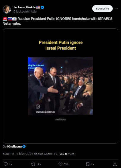 Is the video of Russian President Putin not shaking hands with Netanyahu current?