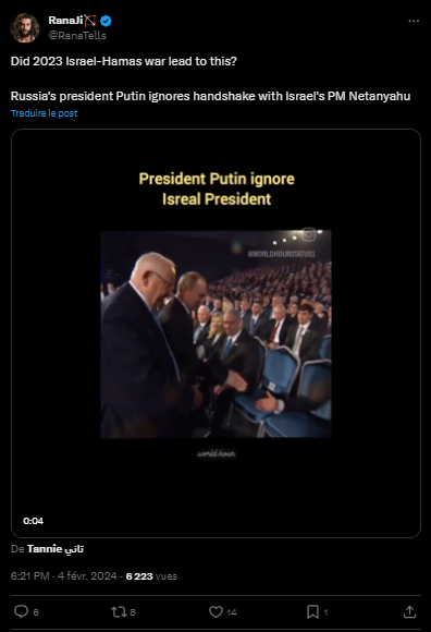 Some social media users linked Putin’s refusal to shake hands with Netanyahu to the ongoing Israel-Hamas conflicts. Users claimed that the Russian President refused to shake hands because he took a stance that showed his support for Palestine.
