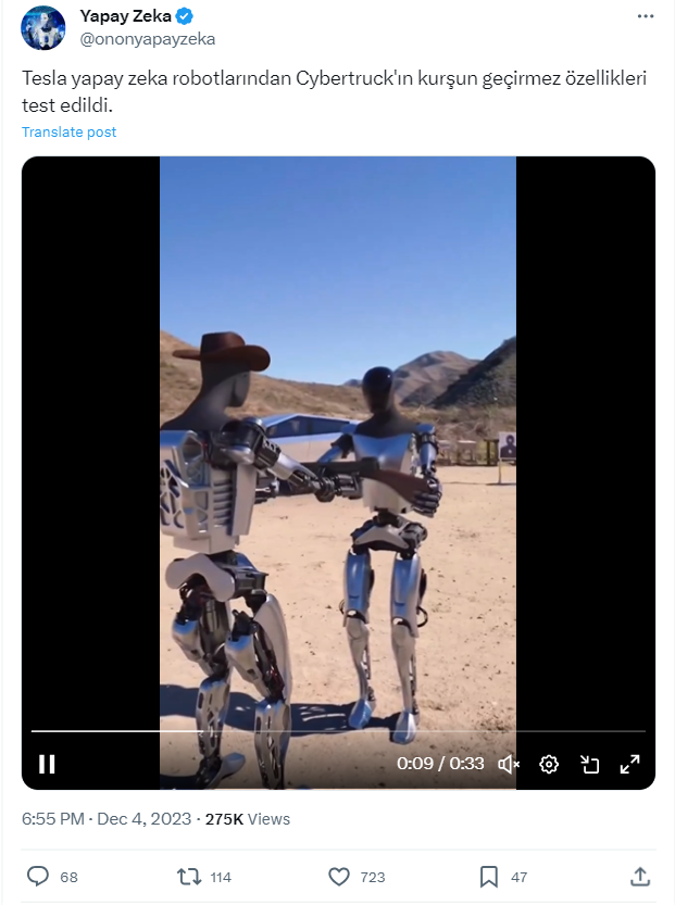 - The video showing TeslaBots performing a bullet resistance test on Cybertruck is not real.