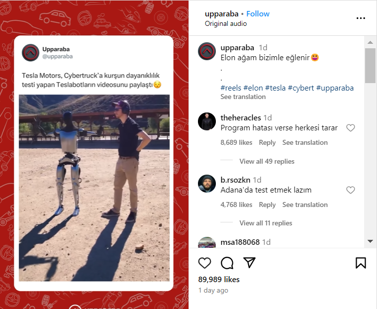 SoKrispyMedia has created Teslabot videos with visual effects in recent months. In September 2023, they brought to life an imaginary world where Teslabot provides Uber service with the Cybertruck.