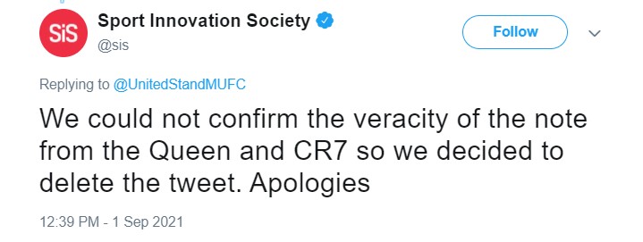 Hayran sayfasının etiketleyerek kaynak gösterdiği Sport Innovation Society isimli sayfa da aynı iddiayı paylaşarak, Kraliçe’nin yakınları için 80 forma isterken, kendisi için özel, Ronaldo imzalı bir forma talep ettiğini belirtti.