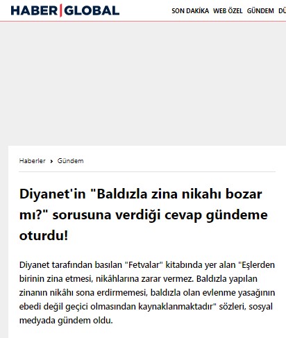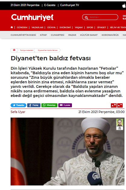 Cumhuriyet, Haber Global ve Haberler.com’un haberine göre Diyanet’e bağlı Din İşleri Yüksek Kurulu Başkanlığı’nın hazırladığı “Fetvalar” adlı kitapta baldızla zina etmenin, dini nikaha zarar vermeyeceği yazdığı iddia edildi. İddia Twitter’da gündem oldu. Ekşi Sözlük’te de konuyla alakalı başlık açıldı. İddia da kitabın 2015 basımının 871. Fetvasında “Baldızıyla zina eden kişinin hanımı boş olur mu” sorusuna “Zina büyük günahlardan olmakla beraber eşlerden birinin zina etmesi, nikâhlarına zarar vermez” cevabı verildiği söylendi. Buna gerekçe olarak da “Baldızla yapılan zinanın nikâhı sona erdirmemesi, baldızla olan evlenme yasağının ebedi değil geçici olmasından kaynaklanmaktadır” ifadesi yer aldığı iddia edildi.