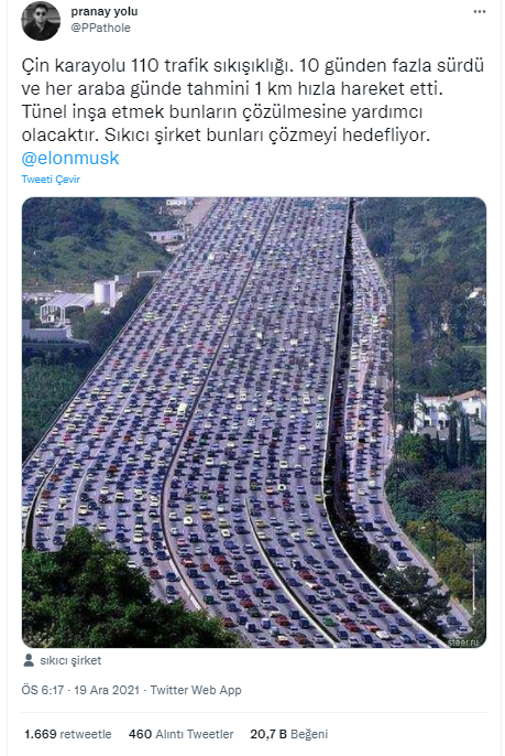 Sosyal medyanın gündeminde olan otoyol fotoğrafı, ‘dünyanın en uzun trafiği Çin’de yaşandı’ iddiasıyla yeniden dolaşıma girdi. Çin’in nüfusunun fazla olması görüntünün gerçek olabileceğini düşündürüyor. Peki Dünya’nın en uzun trafiği Çin’de görüntülenmiş olabilir mi? Dogrula.org araştırdı.