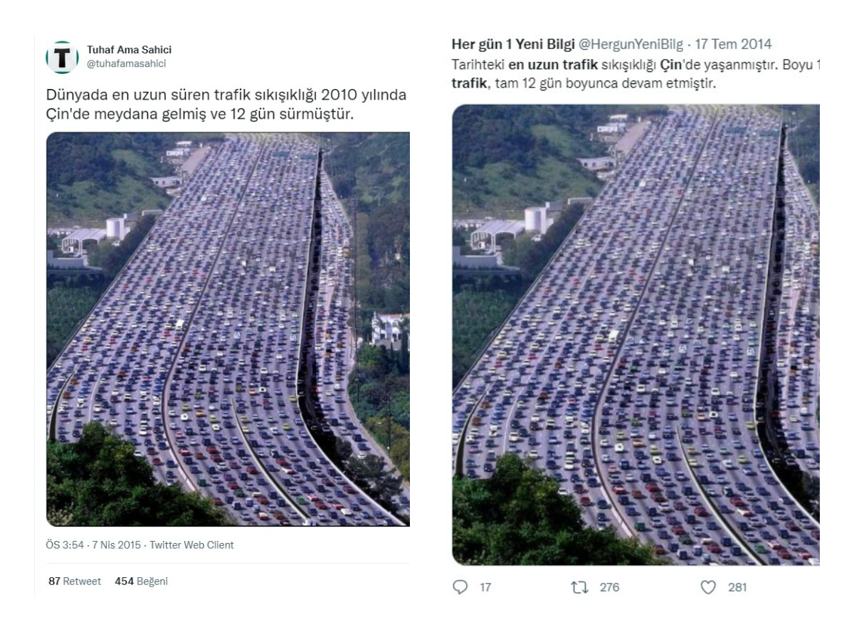 Fotoğrafın Çin’deki dünyanın en uzun trafiğini gösterdiği iddiası