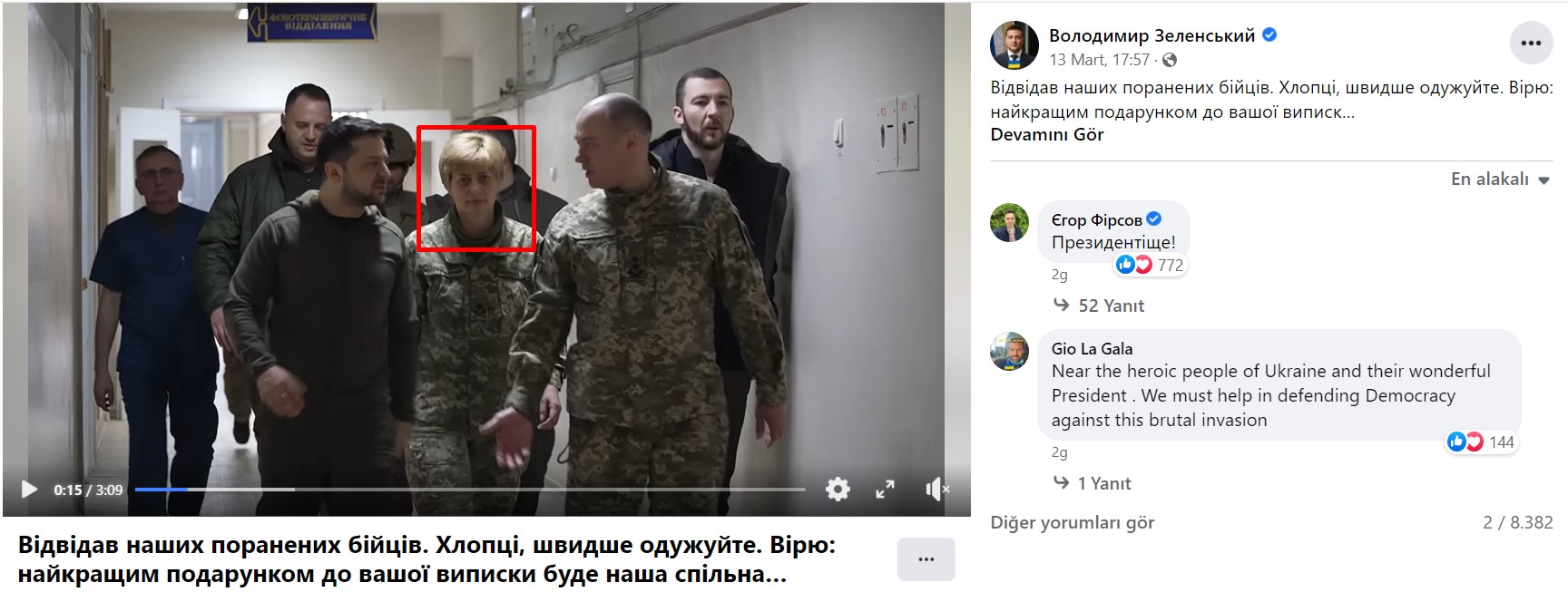 Ukrayna’da yaşanan askeri hareketlilik 24 Şubat’tan bu yana şiddetli bir şekilde devam ediyorken medyada paylaşılan bazı gönderilerilerin gerçeği yansıtmadığına sıklıkla şahit oluyoruz. Ukrayna Devlet Başkanı Volodimir Zelenski, 13 Mart’ta sosyal medya hesabından saldırılar sırasında yaralanan kişileri hastanede ziyaret ettiği bir videoyu paylaştı.